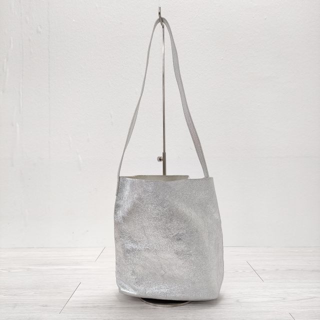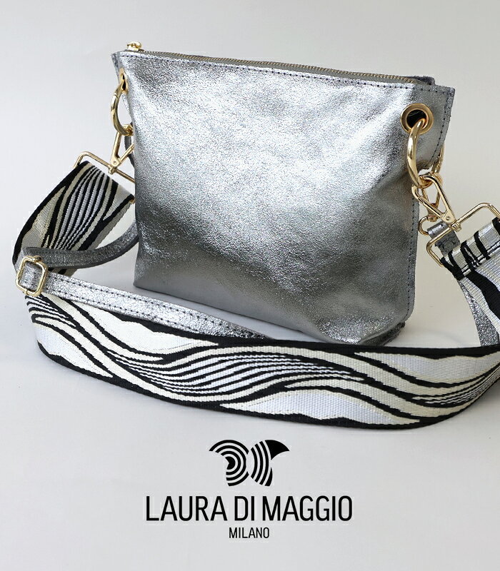 LauradiMaggio MILANO ラミネートシルバー箔 Wショルダー レザーバッグ Laminated silver double shoulder leather bag ラウラ・ディ・マッジオ 2way 3way【送料無料】