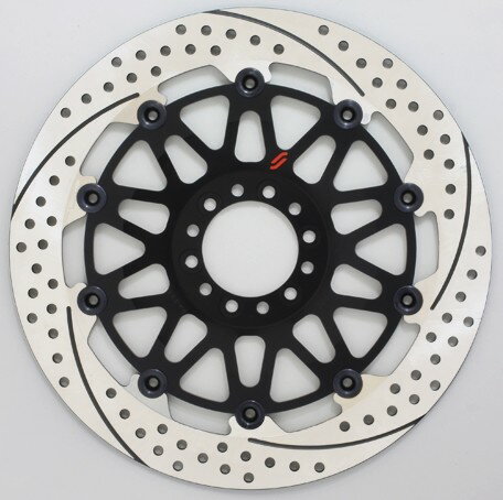 ■注意■この商品は下記となります。必ずご確認ください。左用 / インナータイプ:M / フローティングピンカラー:レッド / アウター:ホール&スリットタイプ /フローティングタイプ:フルフローティング■他の商品はこちらです右用 / インナータイプ:M / アウター:ホール&スリットタイプ / フローティングピンカラー:シルバー /フローティングタイプ:セミフローティングはこちら右用 / インナータイプ:M / フローティングピンカラー:レッド / アウター:ホール&スリットタイプ /フローティングタイプ:セミフローティングはこちら右用 / インナータイプ:M / アウター:ホール&スリットタイプ / フローティングピンカラー:オレンジ /フローティングタイプ:セミフローティングはこちら右用 / インナータイプ:M / アウター:ホール&スリットタイプ / フローティングピンカラー:グリーン /フローティングタイプ:セミフローティングはこちら右用 / インナータイプ:M / アウター:ホール&スリットタイプ / フローティングピンカラー:ゴールド /フローティングタイプ:セミフローティングはこちら右用 / インナータイプ:M / フローティングピンカラー:ブルー / アウター:ホール&スリットタイプ /フローティングタイプ:セミフローティングはこちら左用 / インナータイプ:M / アウター:ホール&スリットタイプ / フローティングピンカラー:シルバー /フローティングタイプ:セミフローティングはこちら左用 / インナータイプ:M / フローティングピンカラー:レッド / アウター:ホール&スリットタイプ /フローティングタイプ:セミフローティングはこちら...■商品概要フロント用【インナーカラー】タイプM:ブラックタイプS:グレー【入数】1枚【素材/材質】インナー:アルミ合金(ハードアルマイト処理)【仕様】外径:320 mm板厚:5.0 mmMIN.TH.(使用限度):4.5 mm内径:64 mmPCD:80 mm孔数:6径:8 mmオフセット:10 mmパッド有効幅:35 mmピン:10ピンMade in Japan■詳細説明■世界トップシェアの安心をより安く。ブレーキカスタムはここから始まる■サンスター独自のディスクローター専用ステンレス材を採用。世界中の車両メーカーから選ばれ続けるオールラウンドディスクローターです。純正キャリパー、純正パッドとの相性も抜群。ストリート使用での耐久性とメンテナンス性を重視した、カシメタイプのフローティングピンを採用しています。純正ディスク同等以上の性能を持ちながらも価格は純正ディスク以下。より手軽にブレーキカスタムをお楽しみ下さい。好みのブレーキを仕立てる。新しいブレーキチューニング。【選べるという思想、それがプレミアムレーシング】■選択1-アウターローター【熱をコントロールし、スピードを支配する制動を極める】アウターローターの形状は、ブレーキディスクにとって最も重要な部分。いかに効率よく運動エネルギーを熱に変換し、受け止めるか。その為に必要な材質、形状は日々進化しています。用途やシーンに合わせて選べる2種類のアウターローター。■選択2-板厚【0.5mmがブレーキフィーリングを劇的に変える】あまり知られていないディスクローターの厚み変更。レースの世界では一般的で、厚みを変えることによるブレーキフィーリングの差は圧倒的。プレミアムレーシングだからできる板厚のチューニング。【アウターローターの板厚を厚くすることによるメリット・デメリット】「メリット」・ピストンの突出量が少なくなるためブレーキフィーリングのダイレクト感が増します。・熱容量が増えることにより、熱ひずみに強くなります。・耐熱性が上がり、レバーが安定します。「デメリット」・キャリパーによっては装着できない場合があります。・重量が増加します。・価格が上がります。-参考値-品番:DE10 5.0mm厚 320mmの重量1290g品番:DE12 5.5mm厚 320mmの重量1485g最新のレース現場では・・・スーパーバイク世界選手権や全日本選手権などの最高峰レースカテゴリーで採用されている板厚は6.0mm以上のディスクローターが採用されています。その背景には、タイヤやサスペンションなどの足回りの性能が向上し、ブレーキにかかる負担が大きくなってきたためです。板厚を厚くすることで重量も増えますが、厚くすることによるメリットの方が大きいため、ブレーキタッチの安定化に欠かせないチューニングになっています。■選択3-インナーローター【機能美が足元を引き締める】ブレーキディスクの外観を大きく左右するインナーローター。表面処理は耐久性を重視したブラックハードアルマイトを採用し、妥協なく作りこまれたインナーローター。ブレーキフィーリングにも影響をもたらす選択。・S Type(ショートスポーク)従来のスポークから進化させ、剛性を上げることに成功。シンプルなデザインが、どんな年代の車両にもマッチします。重量334g(取付形状101)・M Type(メッシュタイプ)重量面で優れているM Type。必要な剛性を確保しつつ、軽量化を実現。最新のスーパースポーツにも合うデザインを採用しました。重量300g(取付