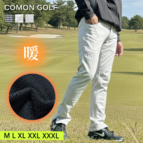 ゴルフウェア メンズ パンツ 冬 秋 ロングパンツ ズボン ホワイト 派手 防寒 秋冬 冬用 裏フリース 暖 総柄 おしゃれ ボトムス 大きいサイズ M L XL XXL XXXL COMONGOLF裏フリースボンディングウエストゴム入り総柄ゴルフパンツ(CG-A21033)