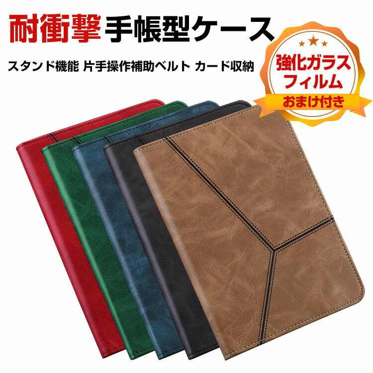 Lenovo Tab K10 10.3インチ TB-X6C6F/TB-X6C6X/TB-X6C6NBF レノボ タブ ケース Android PUレザー おしゃれ 持ちやすい 汚れ防止 スタンド機能 カード収納 片手操作補助ベルト カッコいい 手帳型カバー お洒落な ゴムバンドのデザイン 強化ガラスフィルムおまけ付き