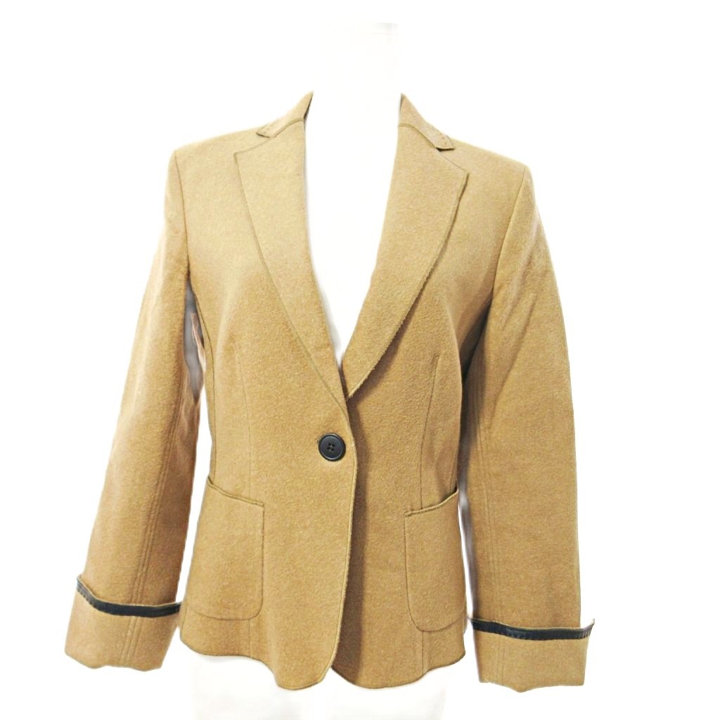 【中古】レコパン LES COPAINS ニット ジャケット 2 茶系 キャメル テーラード ボタン イタリア製 毛 ウール レディース 【ベクトル 古着】 250918