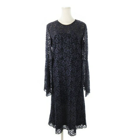 【中古】レコパン LES COPAINS 総レースワンピース ひざ丈 長袖 フレアスリーブ ビスチェデザイン 44 M 紺 ネイビー /CK9 ■GY18 レディース 【ベクトル 古着】 250929