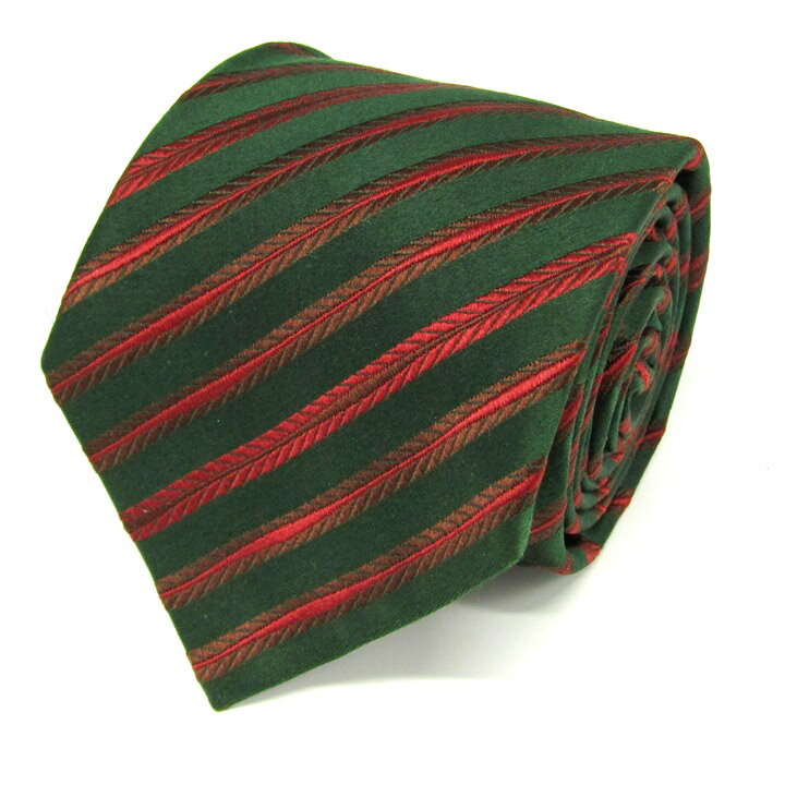 レコパン ブランド ネクタイ ストライプ柄 ヘリンボーン柄 シルク PO メンズ カーキ Les Copains イタリア高級老舗 【中古】