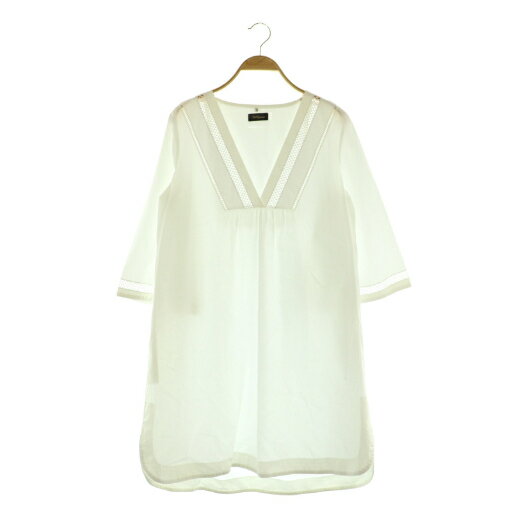 【中古】レコパン LES COPAINS 刺繍切り替え シャツワンピース 膝丈 七分袖 フレアスリーブ レース 42 ホワイト /MY ■OS レディース 【ベクトル 古着】 250916