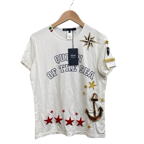 【中古】BLUE Les Copains タグ付き Tシャツ ビーズ刺繍 スパンコール ワッペン ホワイト サイズ44 LL相当 レディース 【ベクトル 古着】 250722