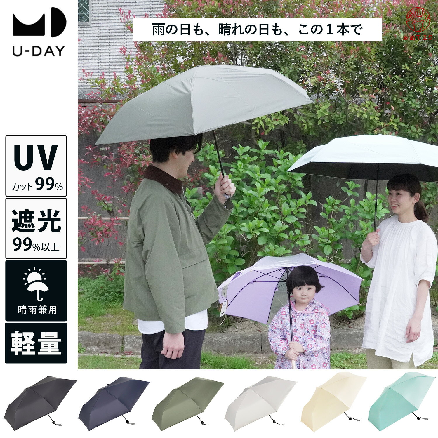 【U-DAY】機能性抜群!大きめサイズなのに軽量でさらに晴雨兼用の折りたたみ傘 <All Weather Light Mini (オールウェザーライトミニ)> 本格的な雨の日も、日差しの強い日もオールシーズン活躍する折りたたみ傘です。 大きめサイズで男女問わず使いやすいく、 シックなカラーでビジネスシーンにも最適なデザインです。 【耐水・遮光・遮熱性】 ポリウレタンコーティングを施した防水生地を使用しています。 耐水・遮光・遮熱性に優れ、日傘としても雨傘としても使用できます。 紫外線遮蔽率99%以上/遮光率99%以上。 【軽量&大きいサイズ&丈夫】 親骨60cmの大きめサイズで背負ったリュックが覆えるほど。 さらに、軽量なので持ち運びもラクラク! 生地には高密度な軽量生地を、骨には折れにくいカーボン素材を使用しています。 【カラーバリエーション】 A. ブラック B. ネイビー C. カーキ D. グレー E. アイボリー F. グリーン 【サイズ】 ・親骨の長さ:60cm ・直径:109cm ・全長:60cm ・折りたたみ時の全長:26cm ※製造時期により若干の誤差が生じることがございます。 【品質】 ・安全性:開閉時に指や爪を傷めないようにロクロ部分の安全カバーをつけました。 ・生地:ポリエステル100% ・原産国:中国製 ・企画:日本 ・重量:約210g〜230g 【注意事項】 ※商品を使用前に、タグ等に記載されている「取り扱い上の注意書き」、「洗濯表示」を必ずご確認ください。 ※商品画像は、光の当たり具合やパソコンなどの閲覧環境により、実際の色味と異なって見える場合がございます。 予めご了承ください。 ※商品の色味の目安は、商品単体の画像をご参照ください。※商品のカラーはこちらの画像をご参考ください。 ※商品のカラーはこちらの画像をご参考ください。 ※商品のカラーはこちらの画像をご参考ください。 ※商品のカラーはこちらの画像をご参考ください。 ※商品のカラーはこちらの画像をご参考ください。 ※商品のカラーはこちらの画像をご参考ください。