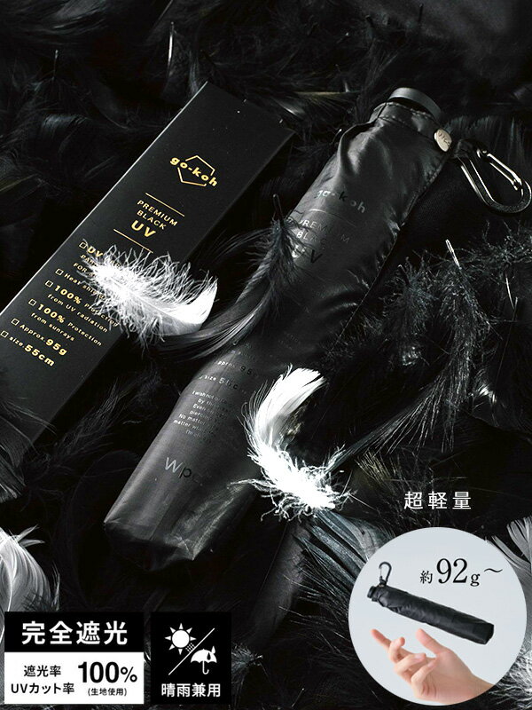 Wpc 日傘 go-koh 遮光 超軽量 折りたたみ傘 晴雨兼用 完全遮光 完全UVカット 遮光率100% UPF+50 遮熱効果 GO001 GO002 Blackout Ultra lightweight Parasol