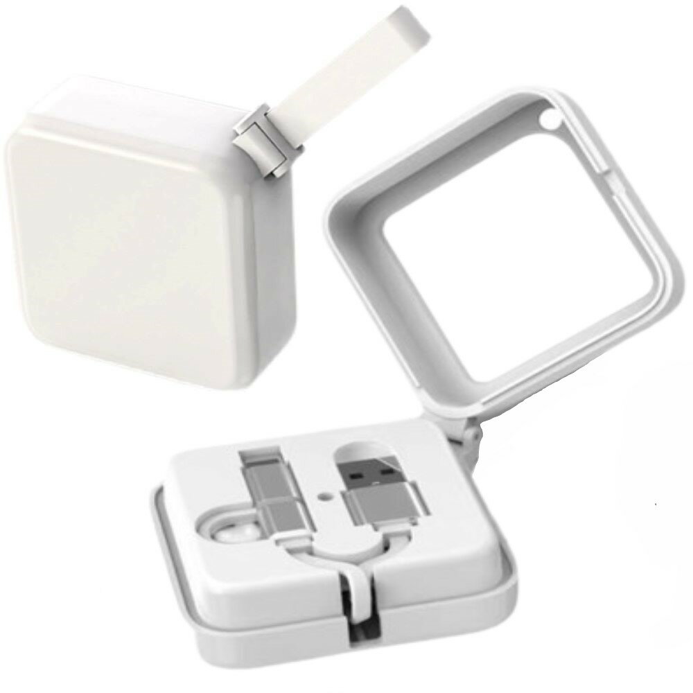 充電ケーブル 3in1 巻き取り式 3イン1 収納式 充電コード 3台同時充電 急速充電 カラー印刷可能 スタンド 超高耐久 iPhone Android Type-C Lightning microUSB 各種対応- 1.2M ホワイト