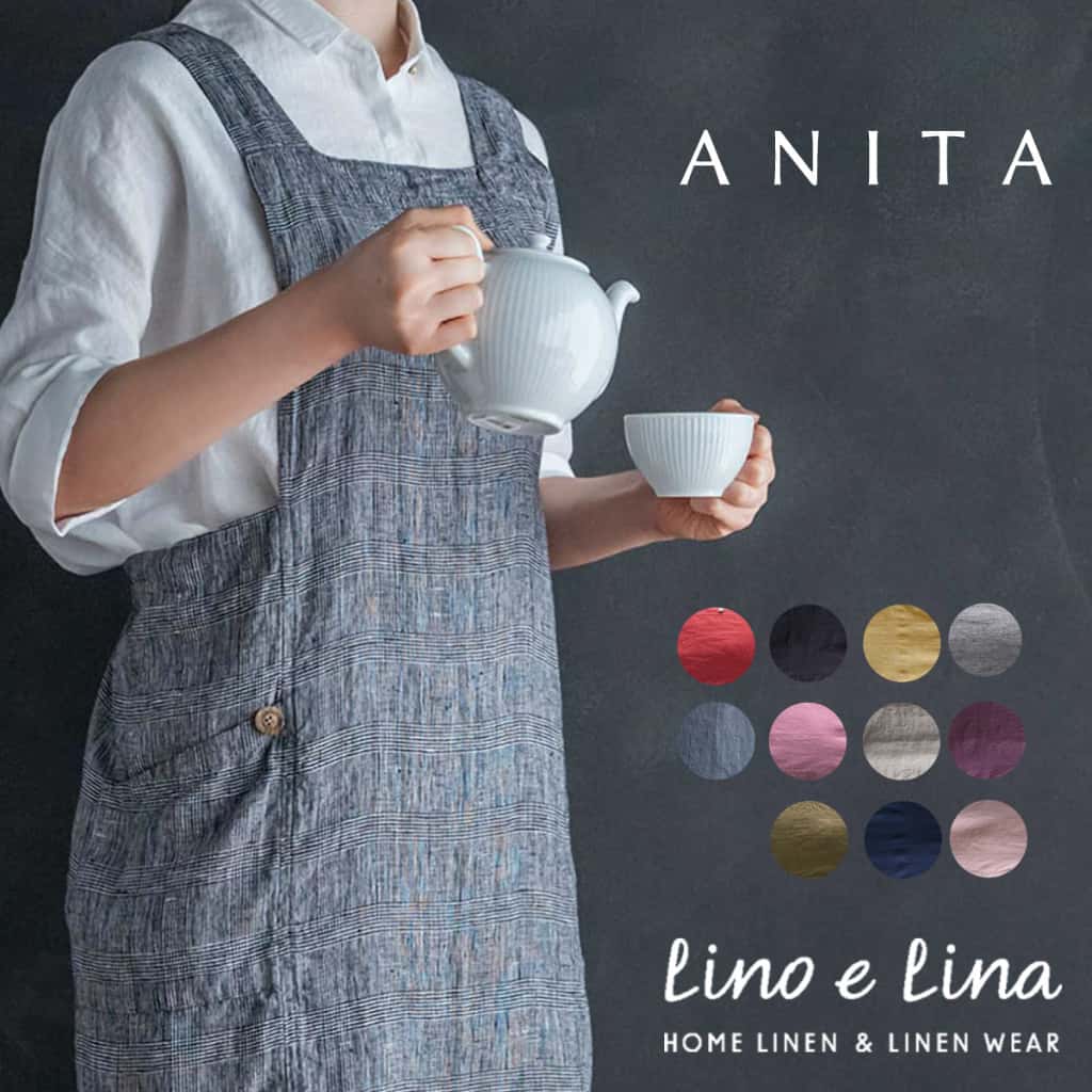 新色追加! lino e lina manon リーノエリーナ アニタ エプロン おしゃれ 高級 リネン100% かわいい ワンピース 作業用 保育士 プレゼント 贈り物 ギフト オレンジ パープル イエロー グリーン ネイビー 無地 ロング丈 レディース メンズ
