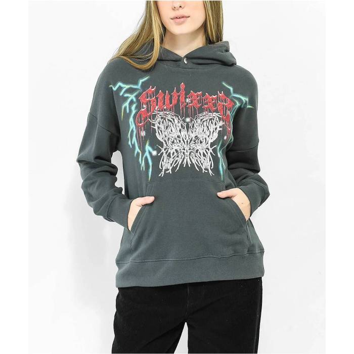 Swixxz 【 By Maggie Lindemann Butterfly Chrome Grey Hoodie Women's Grey 】 灰色 グレー フーディー パーカー レディースファッション トップス パーカー レディース 灰色 グレー