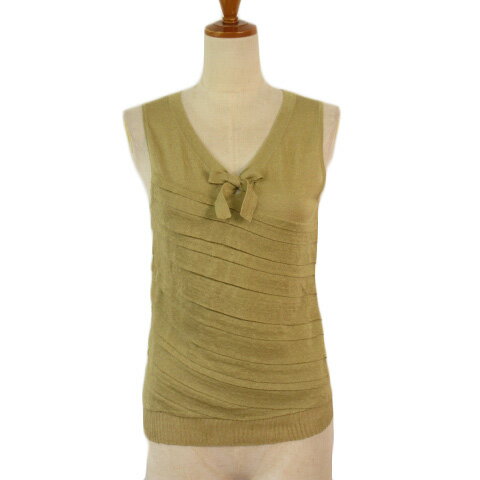 【中古】ケーティー キヨコ タカセ K.T KIYOKO TAKASE K.T LINO カットソー ニット リボン ノースリーブ リネン 11 緑 グリーン レディース 【ベクトル 古着】 230318