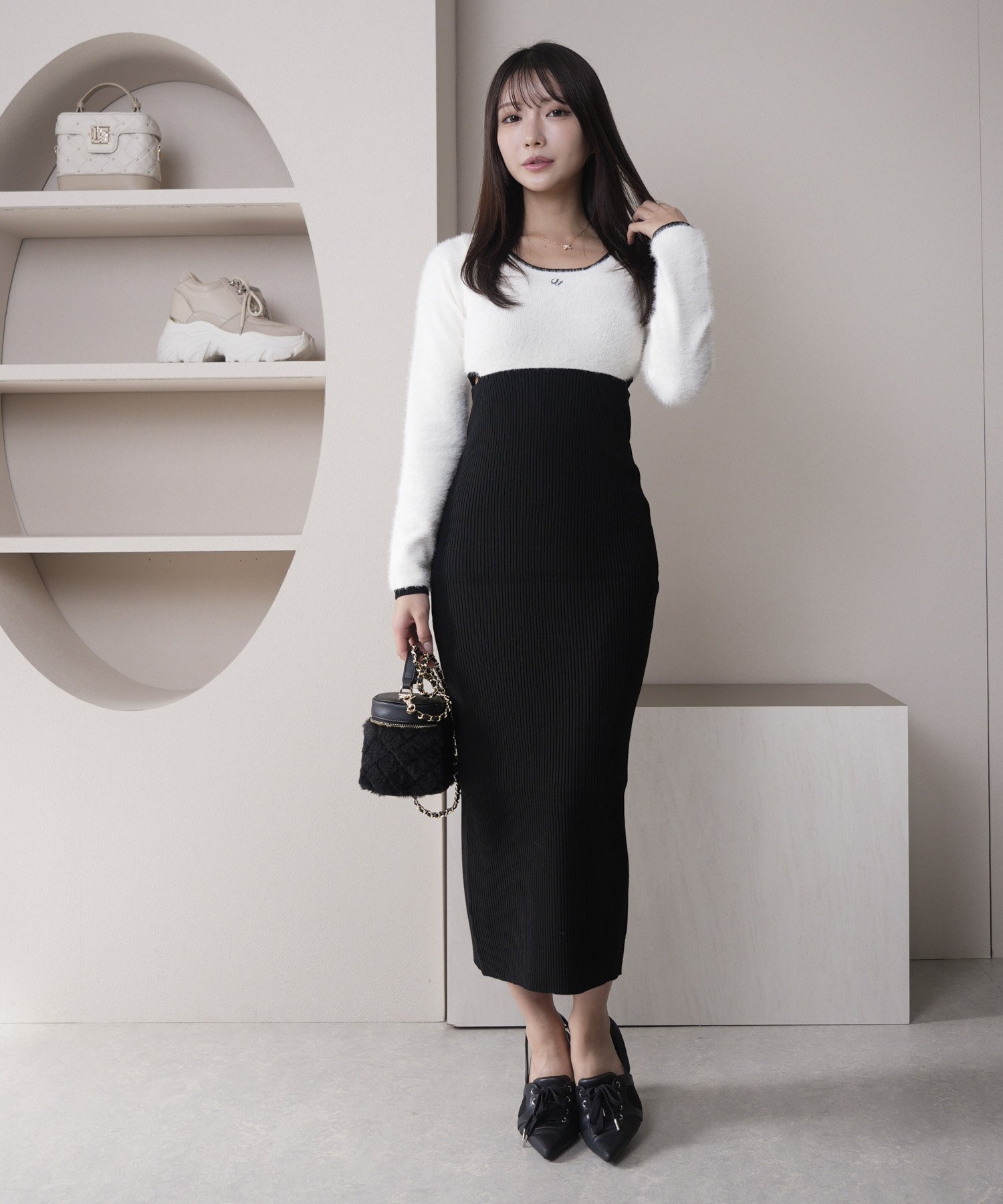 ダブルカラークラシカルニットワンピース/リップサービス(LIPSERVICE)