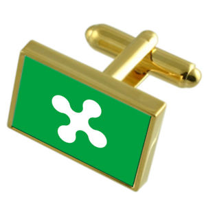 【送料無料】メンズアクセサリ— ロンバルディアイタリアゴールドフラッグカフスボタンボックスlombardy region italy gold flag cufflinks engraved box