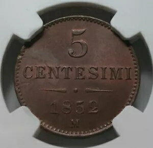 イタリア 州 LOMBARDY VENETIA 5 centesimi 1852 M Milan NGC MS 63 BN UNC オーストリア