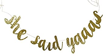【中古】【輸入品・未使用】PartyFuFu She Said Yaaas Banner Gold Fancy Felt Glitter Engagement Party Photo Prop Banner Bachelorette Parties Decorations