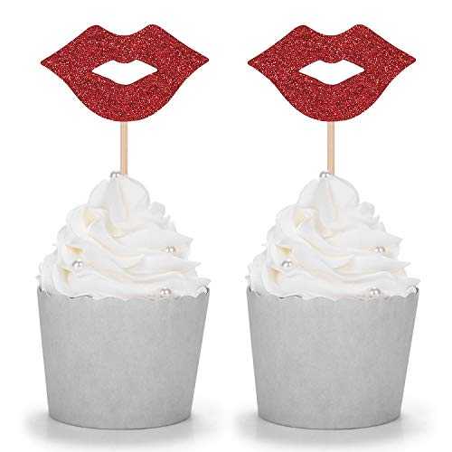 レッドリップカップケーキトッパー 24 個 バチェロレッテパーティーピック ヘンナイトブライダルシャワーデコレーション LightAParty 24 Red Lip Cupcake Toppers Bachelorette Party Picks Hen Night Bridal Shower Decorations