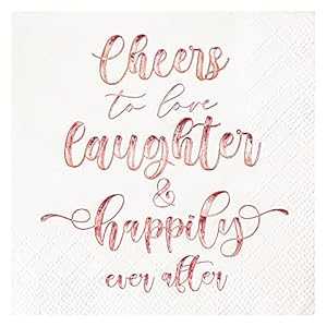 Crisky Bridal Shower Napkins Rose Gold, Happily Ever After Cocktail Beverage Cake Dessert Napkins for Wedding & Bridal Shower Engagement Bachelorette Party Decorations,Cocktail Size, 50 Pcs, 3-Ply