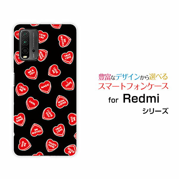 スマホケース 液晶保護フィルム付 Redmi 9T レッドミー ナイン ティーY!mobile イオンモバイル OCN モバイルONELOVE HEART(ブラック・ランダム)[ おしゃれ プレゼント 誕生日 記念日 ]