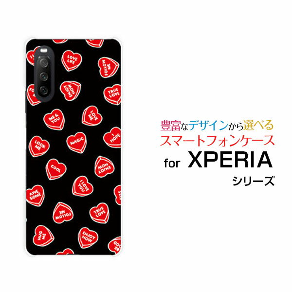 スマホケース 液晶保護フィルム付 XPERIA 10 III Lite エクスペリア テン マークスリー ライト楽天モバイルLOVE HEART(ブラック・ランダム)[ おしゃれ プレゼント 誕生日 記念日 ]