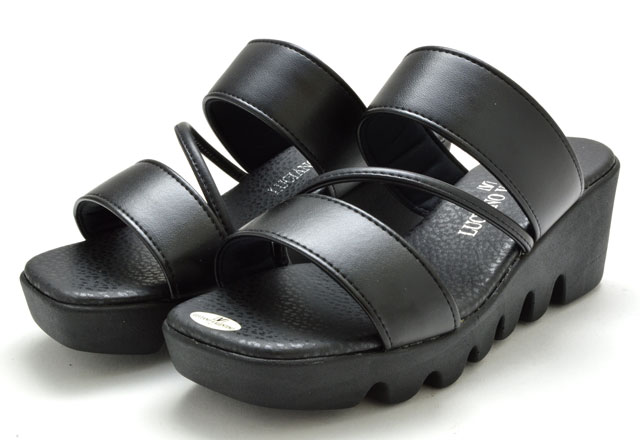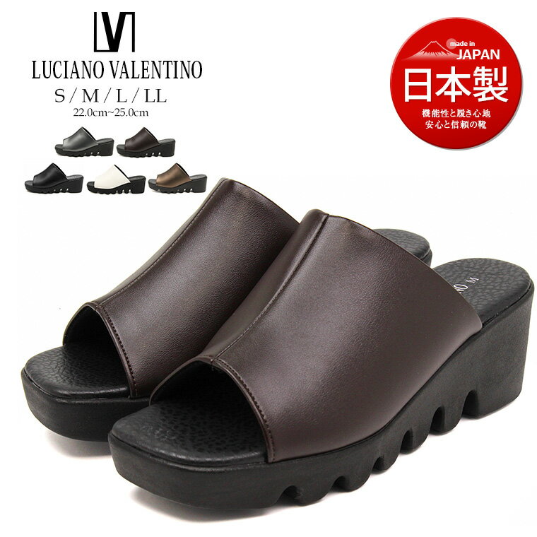 LUCIANO VALENTINO ルチアーノバレンチノ サンダル オフィスサンダル ミュール レディース 靴 黒 ブラック ウェッジ 仕事 日本製 国産 im6095