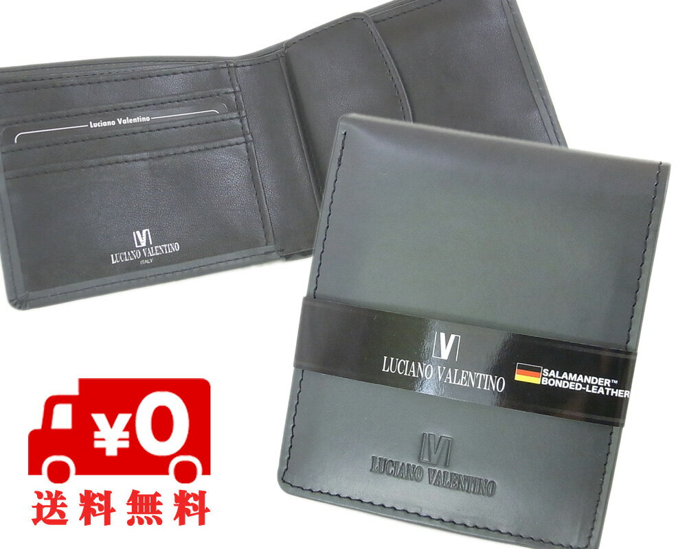 【箱無し】 メンズ 定番 二つ折り財布 サラマンダーボンデッドレザーLUCIANO VALENTINO(L-バレンチノ) 短財布 ブラック [luv7002bk]