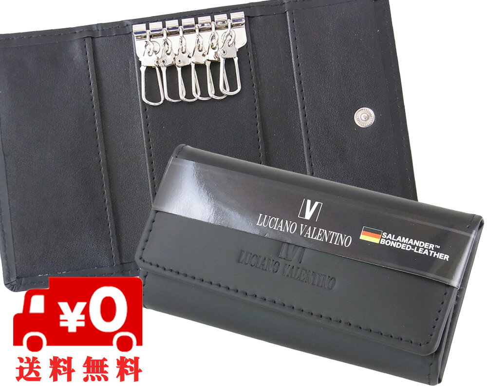 【箱無し】 メンズ 定番 キーリング サラマンダーボンデッドレザーLUCIANO VALENTINO(L-バレンチノ) キーケース ブラック [luv7009bk]