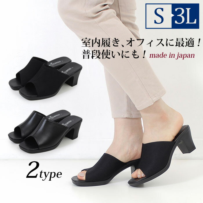 LUCIANO VALENTINO ルチアーノバレンチノ 3903 3913 2way ミュール オフィスサンダル レディース 室内履き ヒール 黒 ブラック オープントゥ 美脚 日本製