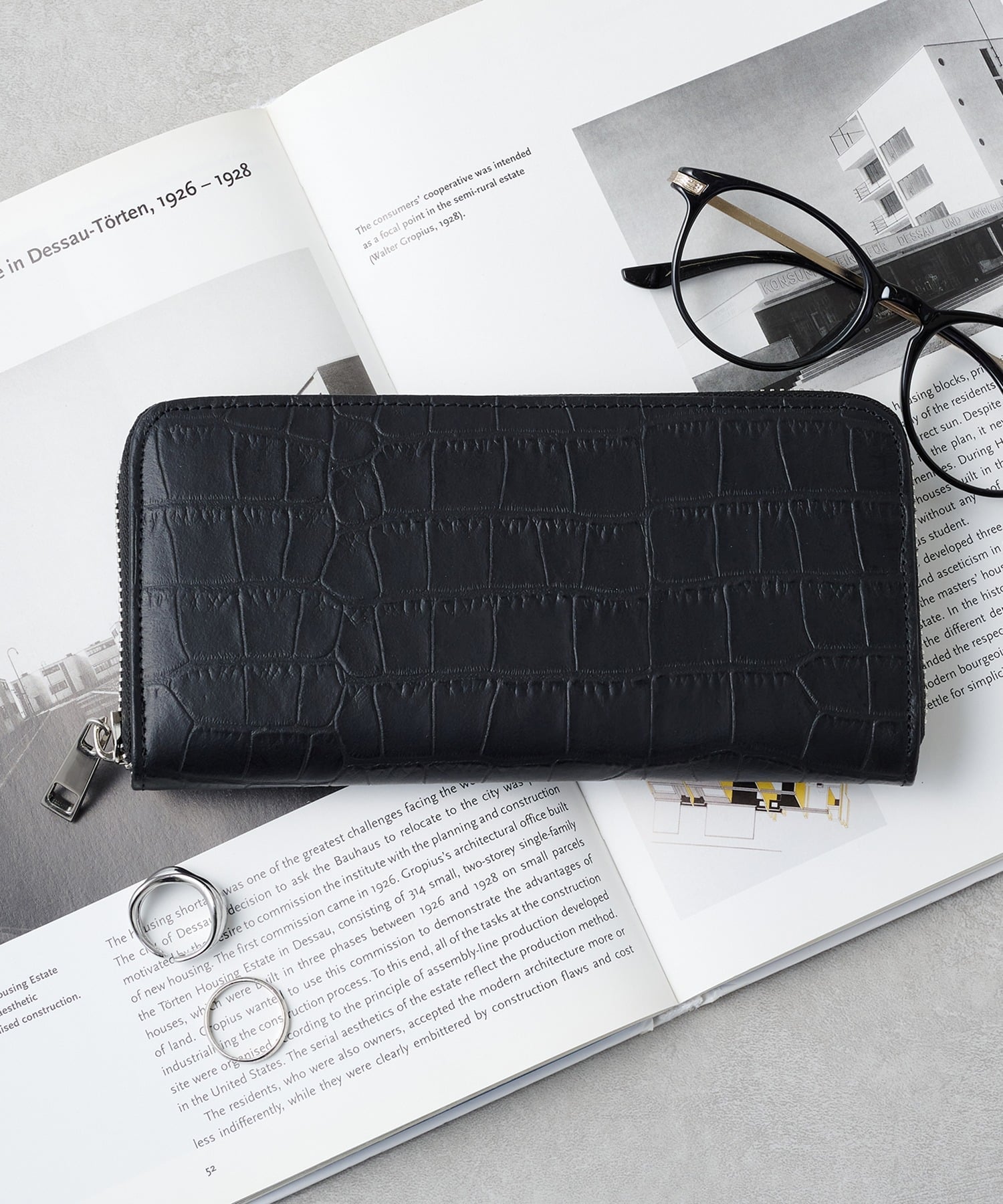 【SALE/25%OFF】SETUP7 SETUP7/LUCIANO VALENTINO 牛革マットクロコ ラウンド財布 ギフト プレゼント セットアップセブン 財布・ポーチ・ケース 財布 ブラウン グリーン ネイビー ブラック