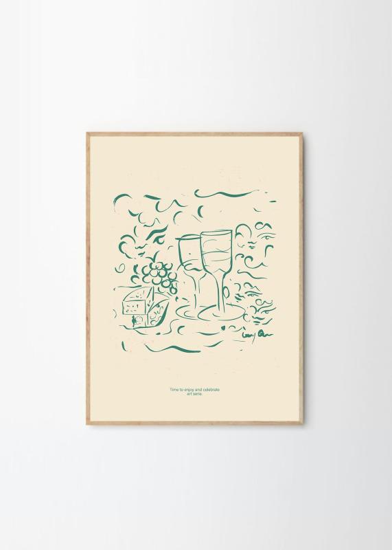 THE POSTER CLUB ポスタークラブ Cheese and Wine 30×40cm Lucrecia Rey Caroジークレープリントという手法でPOSTER CLUBのために特別に作成されています。ジークレープリントとはフランス語で「吹き付けて色を付ける」という意味で、版を用いずに刷り上げるのが特徴です。デジタルデータを上質なナチュラルアート紙に印刷しており、コーティングされていない仕上げと軽い質感を楽しめます。サイズは30×40cmです。飾りやすい大きさで、小さなスペースにもおすすめです。玄関や廊下、階段などにもスッキリと飾っていただけます。当店ではポスターの魅力を引き立てるシンプルなポスターフレームもご用意しております。ぜひ合わせて飾ってみてくださいね。フレームは別売りです。セットではございません。