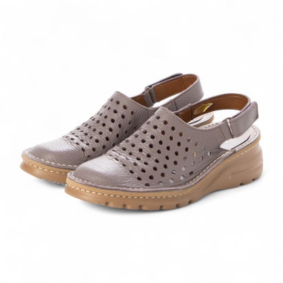 抜け感のあるパンチングデザインが涼しげな印象を与えるレザーサンダル。ナチュラルなカラーとほどよいボリュームソールで、スタイリングのバランスも取りやすい一足。春夏のカジュアルコーデにぴったりです。※本革(天然皮革)の商品について素材の特性上、多少のキズやシワ、色ムラや擦れが見られる場合がございます。汗や雨などで濡れた場合、色移りする場合がございます。革の品質保持のため、できるだけ濡らさないようご注意下さい。24.5cm : 【重さ】202g / 【ヒール寸】4.5cm / 【プラットフォーム高さ】1.5cm別カラーはこちら! パープル(PU) ブルー(LBU) イエロー(YE) グレー(GY)