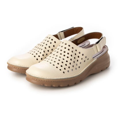 抜け感のあるパンチングデザインが涼しげな印象を与えるレザーサンダル。ナチュラルなカラーとほどよいボリュームソールで、スタイリングのバランスも取りやすい一足。春夏のカジュアルコーデにぴったりです。※本革(天然皮革)の商品について素材の特性上、多少のキズやシワ、色ムラや擦れが見られる場合がございます。汗や雨などで濡れた場合、色移りする場合がございます。革の品質保持のため、できるだけ濡らさないようご注意下さい。24.5cm : 【重さ】202g / 【ヒール寸】4.5cm / 【プラットフォーム高さ】1.5cm別カラーはこちら! パープル(PU) ブルー(LBU) イエロー(YE) ホワイト(IV)