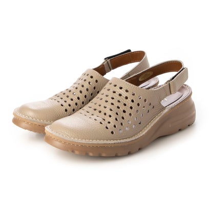 抜け感のあるパンチングデザインが涼しげな印象を与えるレザーサンダル。ナチュラルなカラーとほどよいボリュームソールで、スタイリングのバランスも取りやすい一足。春夏のカジュアルコーデにぴったりです。※本革(天然皮革)の商品について素材の特性上、多少のキズやシワ、色ムラや擦れが見られる場合がございます。汗や雨などで濡れた場合、色移りする場合がございます。革の品質保持のため、できるだけ濡らさないようご注意下さい。24.5cm : 【重さ】202g / 【ヒール寸】4.5cm / 【プラットフォーム高さ】1.5cm別カラーはこちら! ブルー(LBU) イエロー(YE) ホワイト(IV) グレー(GY)
