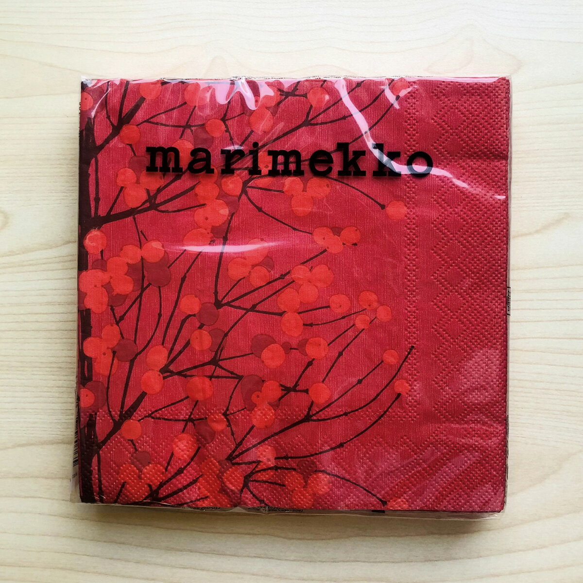 marimekko マリメッコ 可愛い ペーパーナプキン デコパージュ☆LUMIMARJA red☆(1枚/バラ売り)