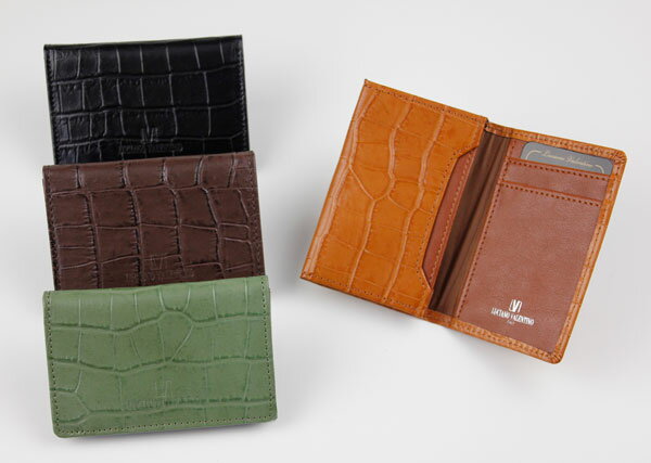 取寄品 本革 LUCIANOVALENTINO ルチアーノバレンチノ クロコ風型押し二つ折り名刺入れ 名刺入れ カードケース LUV-4006 メンズ名刺入れ