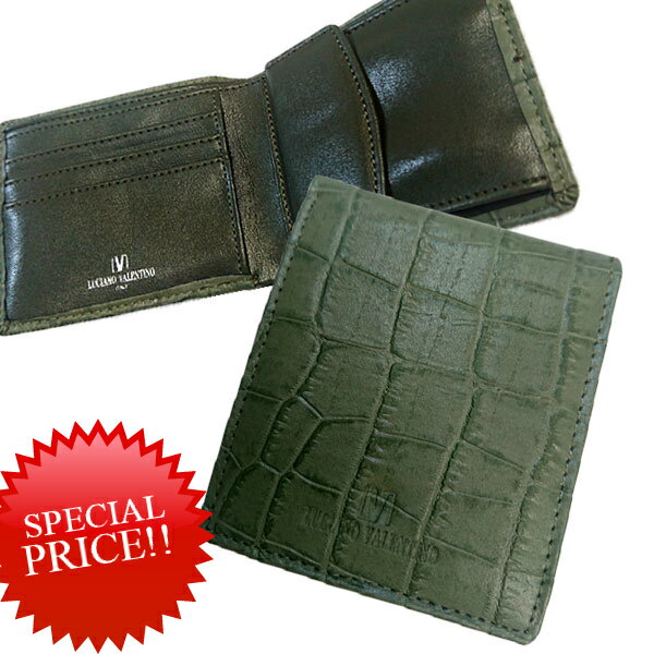 【箱無し】クロコ型押し メンズ 定番 紳士用ショートウォレットLUCIANO VALENTINO(ルチアーノ・バレンチノ) 短財布 グリーン [luv4002gr] クリスマス ギフト プレゼント 贈り物