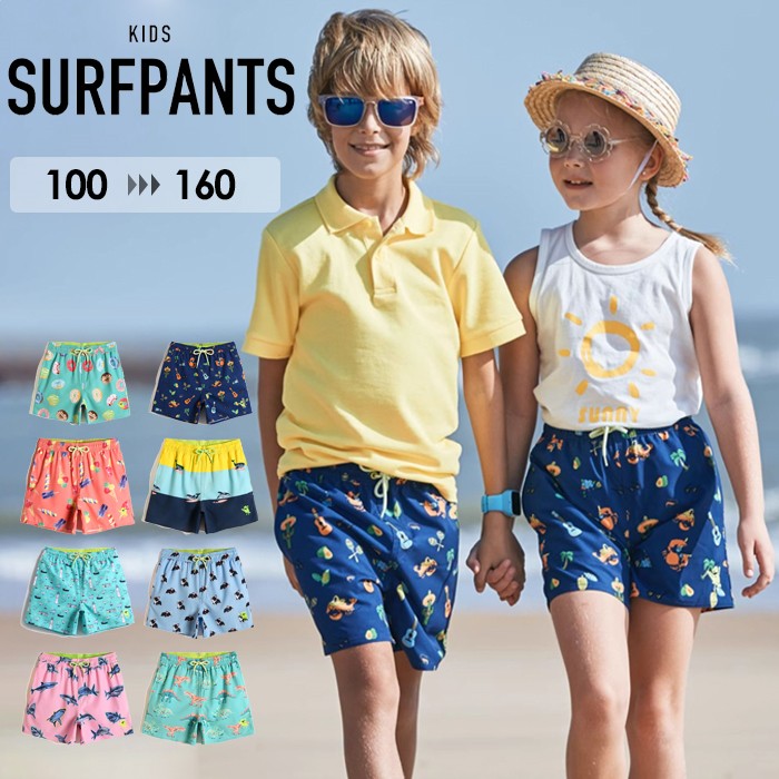サーフパンツ キッズ 水着 女の子 男の子 無地 ハーフパンツ 単品 子供用 小学生 100cm 110cm 120cm 130cm 140cm 150cm 160cm かわいい 総柄 花柄 ボタニカル 水遊び スイミングスクール 短パン リゾート 速乾 ds022d7d7m4