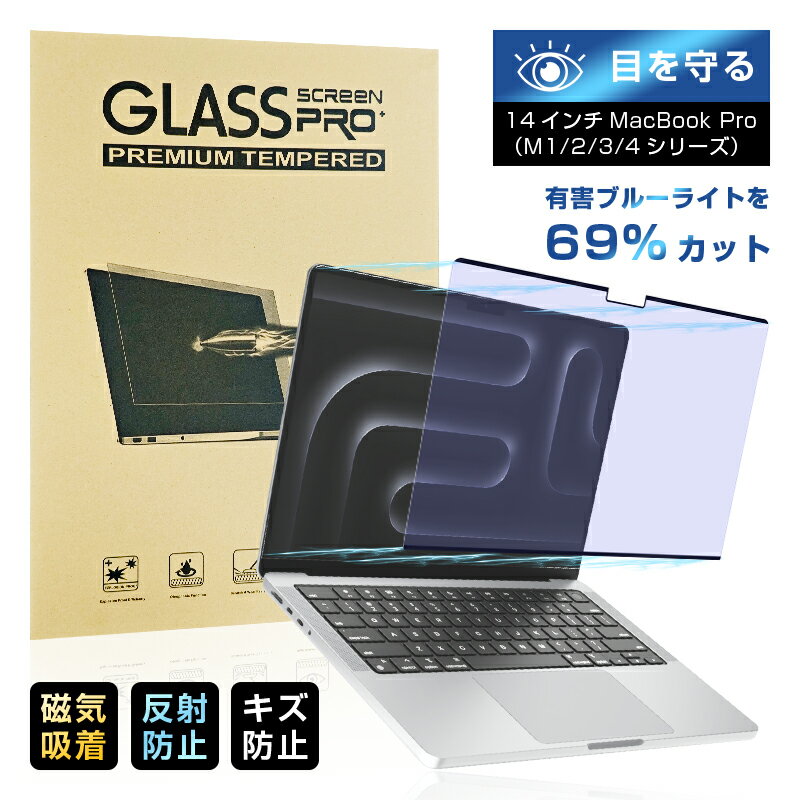 14インチ MacBook Pro(M1 Pro/M1 Max.2021/M2 Pro/M2 Max.2023/M3/M4)対応 ブルーライトカット 液晶保護フィルム 磁気吸着式 視力保護 疎油 撥水 指紋防止 耐衝撃 傷防止 気泡レス 14in MacBook Pro (M3 Pro)(M3 Max) スクリーン保護シート ピッタリ 送料無料