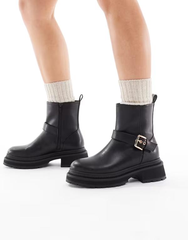 ロンドンレベル レディース シューズ ブーツ・レインブーツ London Rebel Emma chunky boots with buckle detail BLACK PU ブラック