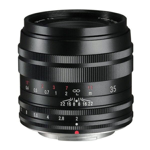 (メーカー保証のみの対応になります) レンズ構成は、6群9枚構成のうち異常部分分散ガラス3枚を使用する最新の光学系を採用し、アポクロマート設計による色滲みのない自然な発色に加え、開放F値F2というマクロレンズとして大口径でありながらコンパクトなスタイルに仕上げています。ピント調整には、フロントフォーカス方式を採用し、光学系全体を繰り出す方式と比較して伸長を短くすることを可能としながら、遠距離から近接まで安定した画質を確保しています。絞り羽根は、10枚構成で、フォクトレンダーVMマウントやミラーレスマウント用レンズと同様、絞りリングが絞り羽根の開閉に直結した機構を採用しています。総金属製の鏡筒内でレンズ群が繰り出されるマニュアルフォーカスの心地よい感触とともに、絞りの開閉でもメカニズムをダイレクトに操作する手応えを味わえます。 最短撮影距離は0.163m(撮影倍率1:2)で、被写体からのワーキングディスタンスはフード装着時で0.06m。近接撮影効果によるピントの浅さに加え、大口径マクロ特有の大きなボケ味を活かした撮影の可能性が拡がります。本レンズはマクロ領域だけでなく、テーブルフォトからポートレイトや風景まで、携帯性の高さと、広い撮影に対応するレンズとして仕上げました。 ■主な仕様 焦点距離 35mm(フルサイズ換算53mm) 口径比 1:2 最小絞り F22 レンズ構成 6群9枚 画角 42.8° 絞り羽根枚数 10枚 最短撮影距離 0.163m 最大撮影倍率 1:2 最大径×全長 φ60.7×54.8mm フィルターサイズ φ49mm 重量 265g レンズフード 付属 マウント X-mount