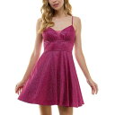 シティ スタジオ レディース ワンピース トップス Juniors' Embellished Glitter Sleeveless Fit & Flare Dress Med.magent