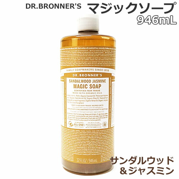 【送料無料】ドクターブロナー マジックソープ サンダルウッド&ジャスミン 946mL×1本 ソープ 天然由来 オーガニック 洗顔 ボディソープ 石けん 全身 DR.BRONNER'S MAGIC SOAP SANDALWOOD JASMINE