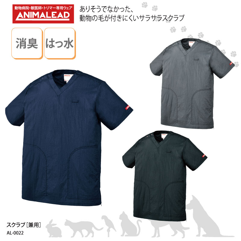 ANIMALEAD アニマリード スクラブ 白衣 AL-0022 男女兼用 男性 女性 メンズ レディース 動物病院 獣医師 トリマー アニマルドクター はっ水 消臭