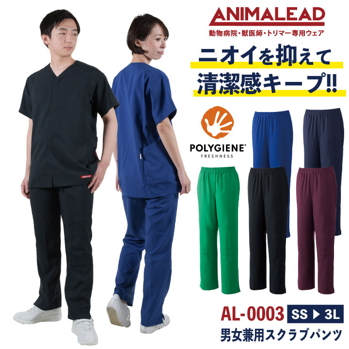 [即日出荷] アニマリード スクラブパンツ ANIMALEAD 獣医師 トリマー 動物病院 ペットショップ チームスクラブ 白衣 男性 女性 兼用 チトセ ストレッチ ct-al0003
