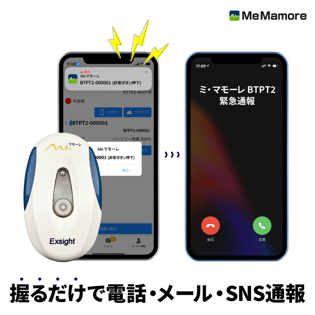 1か月お試しレンタルのご留意事項 ●お試しレンタルのご利用について お申込内容を確認させていただいた後、お試しレンタルのご利用手続きに関して、弊社よりメールにてご案内いたします。 お申込時にご回答いただいた内容によっては、スマートフォンの機種やスマートフォンの操作等の観点から「お試しレンタル」をご利用いただけないことがございます。あらかじめご了承ください。 ●お試しレンタル料金レンタル料金には、以下の費用が全て含まれており、他に費用は一切発生いたしません。・往復の送料・月額利用料金・1,000円分の通報料金 ※追加チャージはできません。 ●お試しレンタル期間レンタル日数はお客様到着日から、30泊31日です。ご購入前のご確認用のレンタルのため、延長はしていただけません。あらかじめご了承ください。返却が遅れた場合は延長料金を請求させて頂くことがあります。(1,100円/日)着払い伝票を同梱していますので、返送日(最終日:到着から31日目)までに、佐川急便に集荷依頼をして発送をお済ませください。 ●ご使用上のご注意使用方法を遵守しお使いください。故意または過失による破損や故障、紛失時は、本体価格(19,800円)をご請求いたします。予めご了承ください。返却時は必ずレンタル品一式を揃えてお返しください。 ●レンタル品の初期不良についてお手元に到着後、速やかに動作チェックをお願いします。弊社にて動作確認後に出荷しておりますが、万が一不具合等ございましたら、早急に交換対応いたしますので、ご連絡ください。初期不良による交換・修理対応が発生した場合は、その期間分レンタル期間を延長いたします。 ●購入時2,000円のお値引きお試しレンタル終了後、製品をご購入される際は2,000円のお値引きをさせていただきます。 おすすめポイント 緊急時ボタンを押すと、スマートフォンからSOS発信! いつ、どこで、何が起こったかをWebで閲覧! 大音量ブザーで周囲にも異常をお知らせ! 特長 ●電話通報、eメール、SMS(各5件まで)へSOS通報が発信されます。 ●スマートフォンのGPS機能を活用すれば、サーバーシステムで通報してきた方の倒れた場所や移動経路が確認できます。 ※GPSの精度は、携帯電話キャリアの精度となります。 ●ボタンを押すと同時にスマートフォンから大音量の警報ブザーを発報。周囲へ異常を知らせます。●暴力などの被害時のために、サイレントモードにすることもできます。 ●本機とスマートフォンが離れて接続が切断されると、アラーム音が鳴り知らせます。 ●日常生活防水(IPX7相当)で、入浴中でも通報可能です。 ご留意事項 ●【BTPT2とスマートフォン】機器本体とスマートフォン2台を併せてお使いいただく製品です。 ●【対応機種】iOSまたはAndroidが搭載されたスマートフォンが必要です。ガラケー、ガラホはご使用いただけません。 ●【Bluetooth接続】機器本体とスマートフォンをBluetoothで接続することによって、ご使用いただけます。Bluetoothの電波到達距離は約5m以内(見通し距離)です。※Bluetoothの電波到達距離は電波環境によりますので、使用したい場所で繋がるかご確認ください。 ●【インターネット接続】スマートフォンがインターネット(WiFiまたは携帯回線4G/5G)に接続されている必要があります。スマートフォンがインターネットに接続されていないと、クラウドサービスに接続できず、通報が行えません。 ●【月額料金・通報料金】通報にはクラウドサービスを利用している為、月額料金と通報料金が発生します。これら料金のお支払いにはクレジットカードが必要です。 MeマモーレWebサービス ご利用料金について ※ご購入後に必要です。レンタル時は料金に含まれています。 月額基本料金は、 440円(税込) です。 通報料金は、以下の通りです。 ●Eメール:11円(税込) ●SMS:22円(税込) ●電話:33円(税込) [ご利用料金のお支払い] アカウントにチャージ(入金)してご利用いただきます。個人の方は、クレジットカードが必要です。※お支払い時期はクレジット会社によって異なります。原則、オートチャージ(自動入金)により、残高がチャージ基準額以下になると、自動的にチャージされます。 ※月額使用料は月初にチャージ額から回収されます※通報料金は通報発生時にチャージ額から回収されます なお、残高が0円以下になると、緊急通報が停止いたします。 手動チャージをご選択いただいた場合は、残高が0円以下になる前にチャージしてください。 商品仕様 ●品名:mamore(マモーレ)押しボタン送信機 ●品番:EXH-BTPT2 ●Bluetooth:規格:Bluetooth Low Energy 使用プロファイル:GATT 電波到達距離:約5m以内(見通し距離) ●操作スイッチ:(1)非常ボタン・・・Bluetooth接続時、警報発信時に2か所同時押し (2)停止ボタン・・・警報停止時、Bluetooth接続切断時に長押し ●表示灯(赤色LED):警報状態時:点灯 電池切れ検出時:点滅(5秒に1回、0.1秒点灯) その他、状態別表示あり ●付帯機能:電池切れ報知機能 ●電源:コイン型リチウム電池CR2032