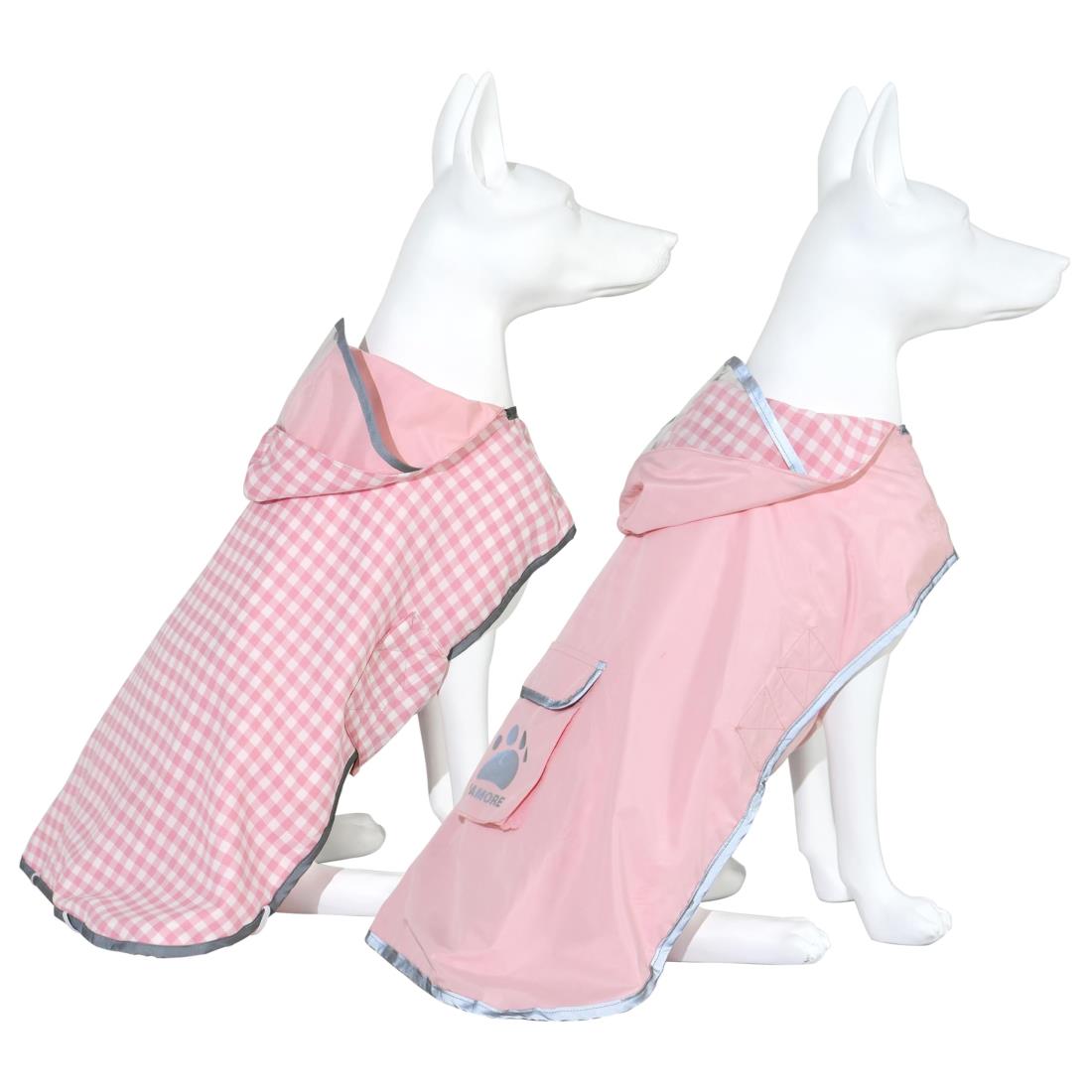 MAMORE 犬用レインコート、リバーシブル 防水 フード付き 反射 格子裏地 ダブル生地 犬のレインジャケット 小型犬 中型犬 大型犬用 (ピンク, XL)