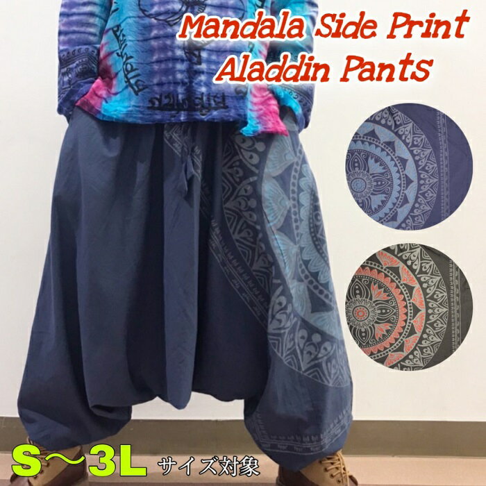 エスニック【送料無料】曼荼羅サイドプリント★アラジンパンツ(アジアンファッション エスニックファッション バルーンパンツ サルエルパンツ ネパール 曼荼羅 マンダラ コットン ロング丈 ウエストゴム ゆったりサイズ 大きいサイズ 22ss manda adp)