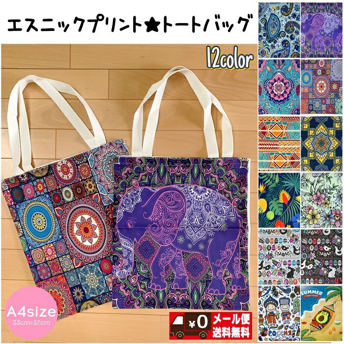 エスニック【メール便送料無料】エスニックプリント★トートバック12color アジアンファッション キャンバスバッグ キャンバストートバッグ お買い物バッグ エコバッグ サブバッグ 通学 通学用バッグ A4 曼荼羅 トートバッグ トートバック sm550 manda
