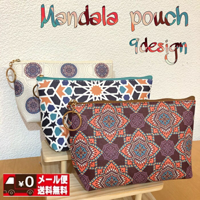エスニック【メール便送料無料】マンダラポーチ★9デザイン(エスニックファッション アジアン 曼荼羅 曼荼羅プリント ポーチ 化粧ポーチ 旅行用ポーチ 旅行用 モバイルポーチ カジュアルポーチ 大容量 小物入れ 収納 通帳入れ コスメポーチ 21ss sm550 manda)