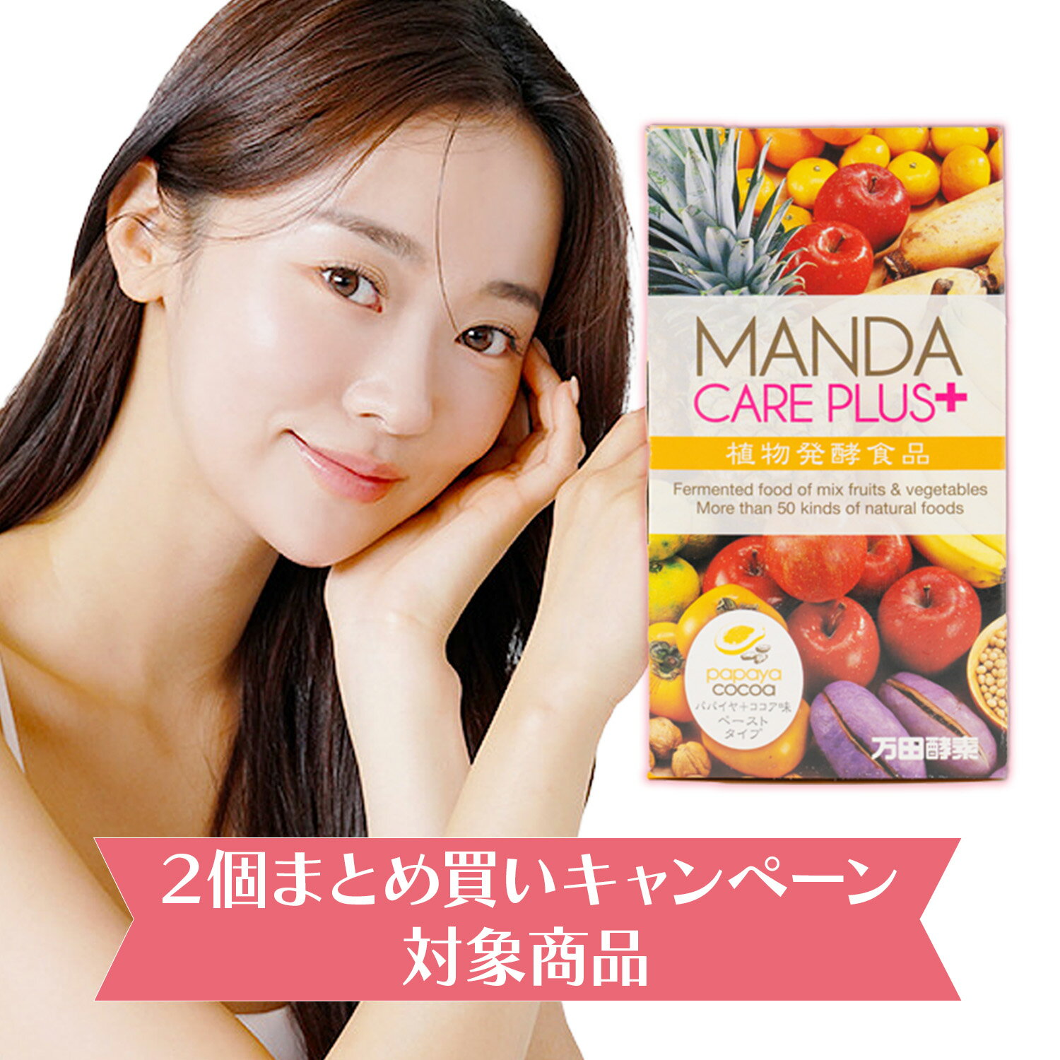 万田酵素は、果実類、野菜類、穀類、海藻類、豆やゴマ類など53種類の植物性原材料を、独自の技術で3年3ヵ月以上発酵・熟成させた植物発酵食品です。 万田酵素は発酵・熟成させることで、植物の豊富な栄養素を効率よく吸収することをめざし、開発された食品です。 MANDA CARE PLUSは、53種類の原材料にパパイヤとココアパウダーを加え、女性のお客様に向けて開発しました。 ※原材料にオレンジ・くるみ・ごま・大豆・バナナ・りんごを使用しています。 商品詳細 内容量 75g(2.5g×30包) 形状 ペースト 原材料名 糖類(黒糖(国内製造又は外国製造)、果糖、 ブドウ糖)、大粒果実(リンゴ、カキ、バナナ、 パインアップル、パパイヤ)、穀類(白米、玄米、 もち米、アワ、大麦、キビ、トウモロコシ)、 かんきつ類(ミカン、ハッサク、ネーブルオレンジ、 イヨカン、レモン、夏ミカン、カボス、キンカン、 ザボン、ポンカン、ユズ)、豆・ゴマ類(大豆、 黒ゴマ、白ゴマ、黒豆)、ココアパウダー、 根菜類(ニンジン、ニンニク、ゴボウ、ユリ根、 レンコン)、小粒果実(ブドウ、アケビ、イチジク、 マタタビ、山ブドウ、山桃、イチゴ、ウメ)、 海藻類(ヒジキ、ワカメ、ノリ、青ノリ、コンブ)、 ハチミツ、クルミ、澱粉、キュウリ、セロリ、シソ 栄養成分表示 100g当たり エネルギー:250kcal たんぱく質:3g 脂質:0.7g 炭水化物:60.5g 糖質:55g 食物繊維:5.5g 食塩相当量:0.07〜0.2g ビタミンB6:0.1〜0.4mg お召し上がり方 健康補助食品として、1日1〜2包を目安に適宜お召し上がりください。食べにくい場合は、他の飲み物、食べ物に混ぜても差し支えございません。 (70℃以上の熱いものは避け、その日のうちにお召し上がりください。) 賞味期限 製造日より2年 保存方法 直射日光下や、温度の高くなる場所での保存はお避け下さい。 使用上の注意 ※体調や体質により、まれにお腹がゆるくなるなどの症状が出る場合がございます。 万一体調に変化があった場合、ご使用をお控えいただき、医師へご相談ください。 ※お召し上がりの際は、分包の切口や端で口を切らないようにご注意ください。 ※植物性原材料を発酵して製造しているため、特有の味・香りを有しております。 風味や粘度などが異なることがありますが、品質には問題ございません。 ※食物アレルギーを持つ方は、原材料をご確認の上、ご使用をお決めください。 食生活は、主食、主菜、副菜を基本に、食事のバランスを。 販売者 万田発酵株式会社 〒722-2192 広島県尾道市因島重井町5800-95 広告文責 万田発酵株式会社 0120-85-3732