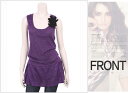 MANGO【マンゴ】パール素材が豪華さを演出 フラワーパープル ノースリーブ パールロングニットTシャツ